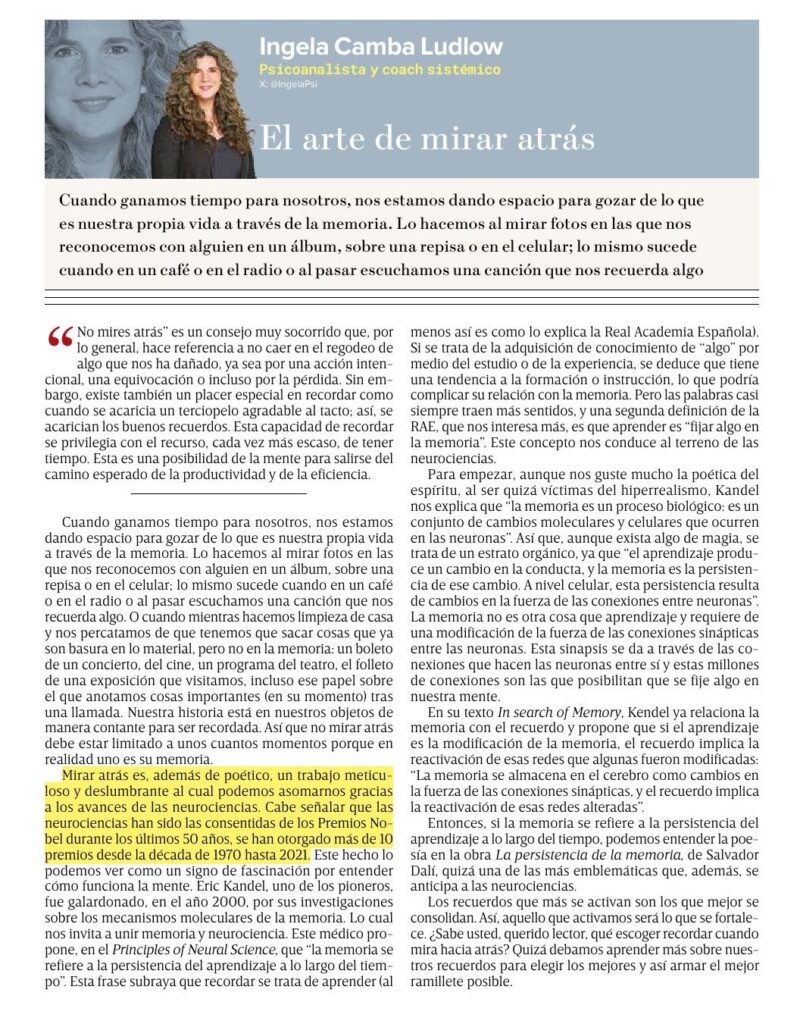 Cuando ganamos tiempo para nosotros, nos estamos dando espacio para gozar de lo que es nuestra propia vida a través de la memoria. Lo hacemos al mirar fotos en las que nos reconocemos con alguien en un álbum, sobre una repisa o en el celular; lo mismo sucede cuando en un café o en el radio o al pasar escuchamos una canción que nos recuerda algo